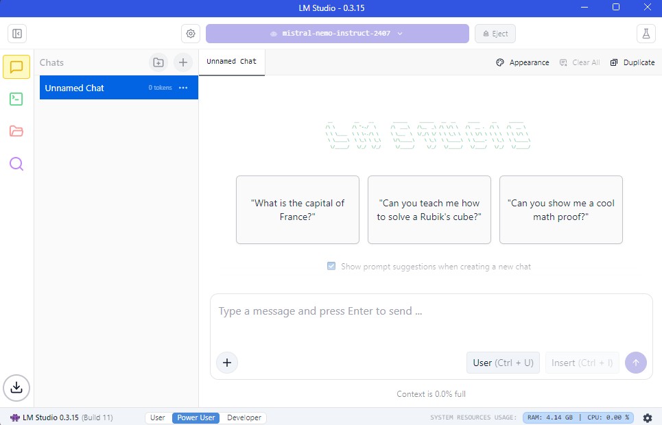 LM Studio has a limited capacity to engage with the user. All models are reliant on the quality of their pretraining, as LM Studio itself does not support advanced use cases such as RAG. Only individual documents may be uploaded into LM Studio. On the other hand, LM Studio can be integrated into a more sophisticated agentic AI network (see below). The download page for LM Studio is found here:https://lmstudio.ai.2