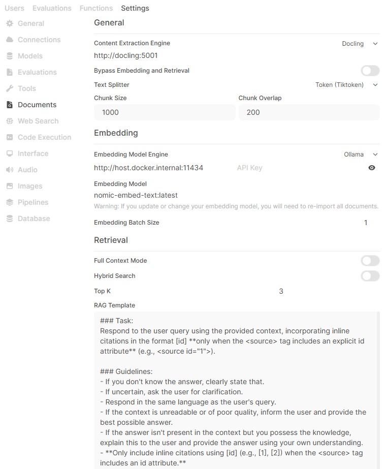 Ollama performs the same task as LM Studio, but with three significant advantages. First, it is a more efficient program that requires fewer hardware resources. More SLMs can be run, and SLMs can be larger and have larger parameter sizes than is possible with LM Studio. The Ollama command-line interface is often enhanced with a graphical user interface called Open WebUI (Figure 3). A library of compatible SLMs is available for search and download from the Ollama repository (Figure 4). Second, Ollama provides direct RAG integration with a vector database (Figure 5) and customization of the workflow, including selecting the specific recursive text splitter, embedding model, and tokenizer (Figure 6).