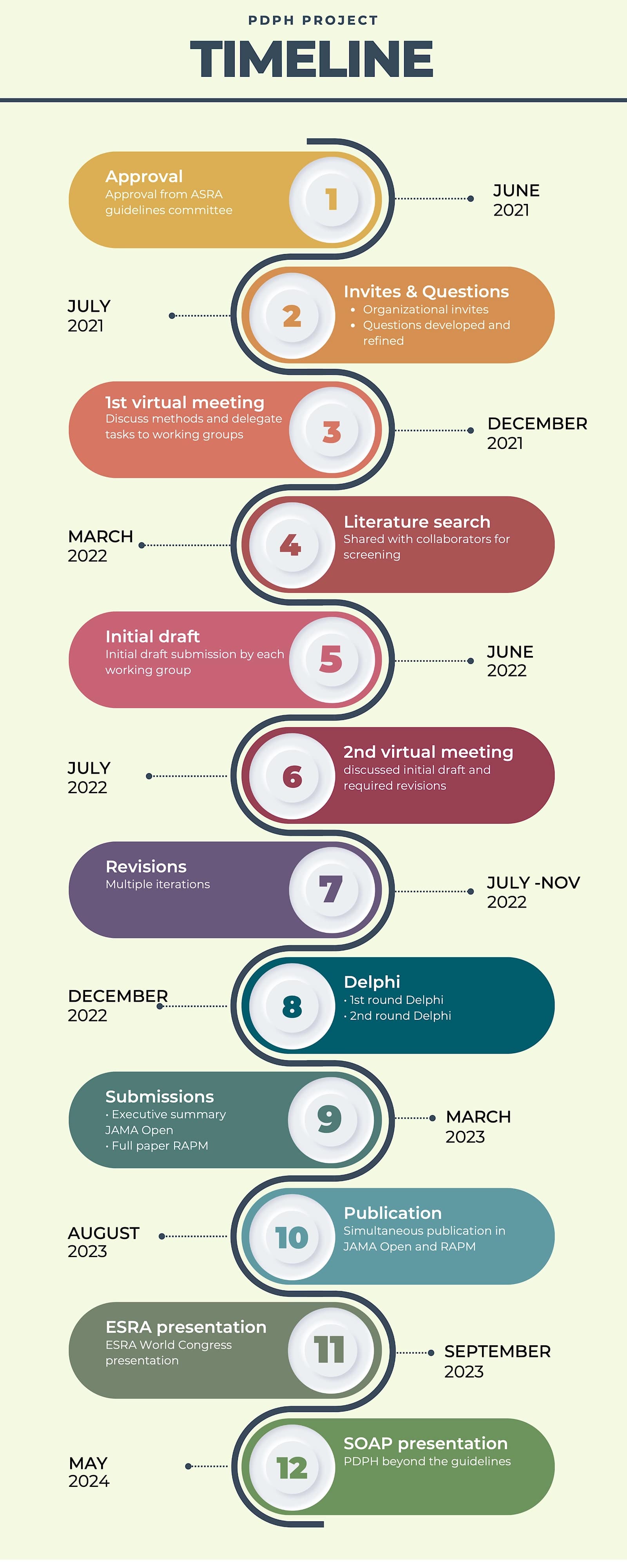 In April 2021, Dr. Samer Narouze and I obtained approval from ASRA Pain Medicine’s guidelines committee and board of directors. The ASRA Pain Medicine executive director, Angela Stengel, contacted the leaders of each society to nominate representatives for the guideline.