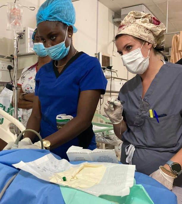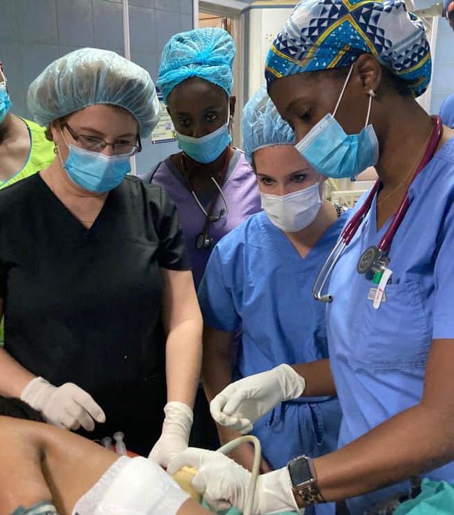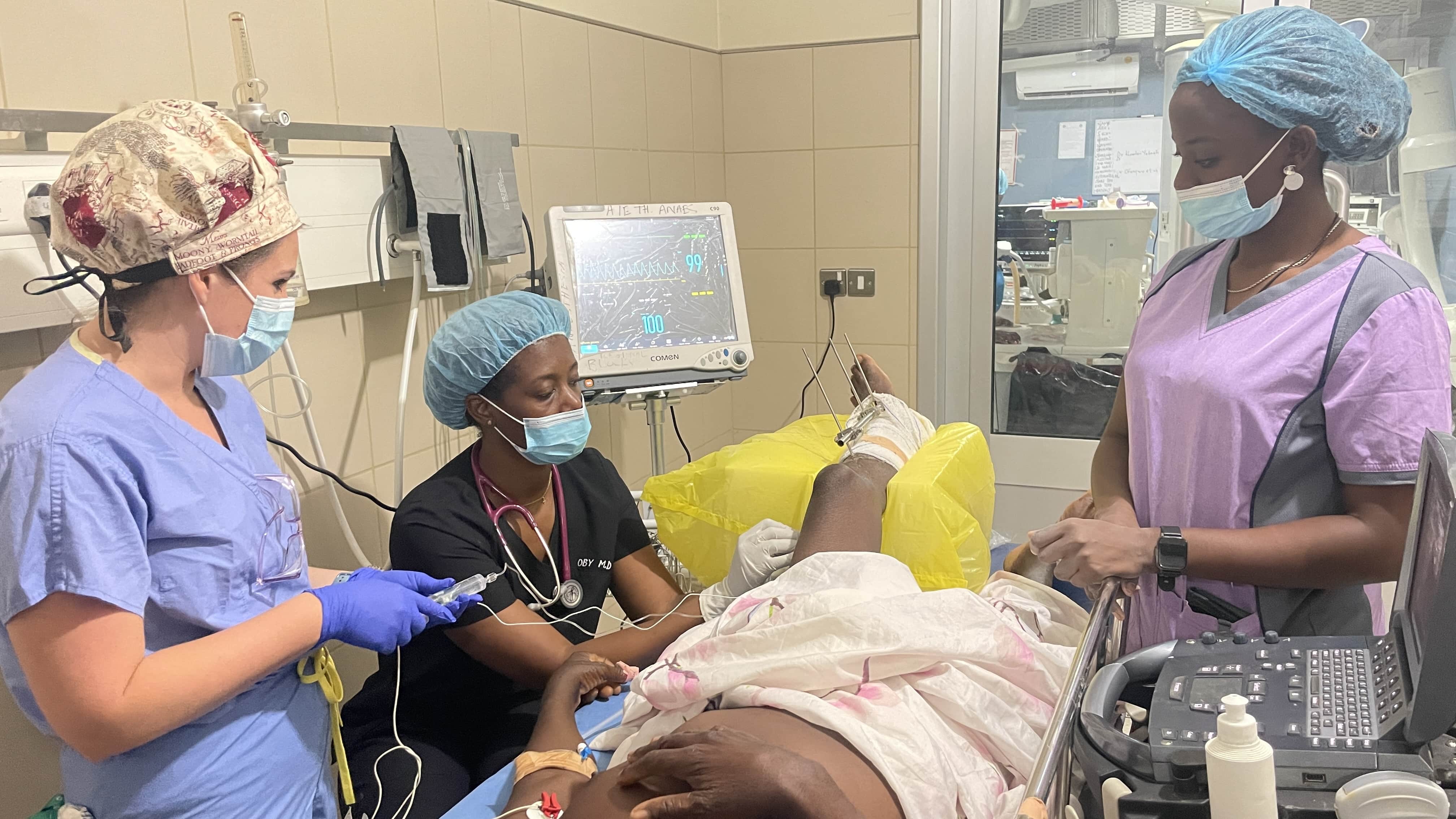 The ability to step back and watch core regional principles being passed on to new trainees demonstrates the true sustainability of these efforts. Providers at KATH are regularly performing spinals as well as upper and lower extremity blocks for primary anesthetics; however, the focus for Dr. Ofungwu during our May 2023 trip was learning new blocks to aid with pain control, focusing on placement and management of catheters and fascial plane blocks, such as the fascia iliaca, PEricapsular Nerve Group, transversus abdominis plane, rectus sheath, pectoralis, and erector spinae plane (ESP), blocks with goals to continue developing these services beyond the accident and emergency operating theaters. The ultimate goal is to have a regional and acute pain service similar to perioperative pain services that exist at many hospitals in North America.