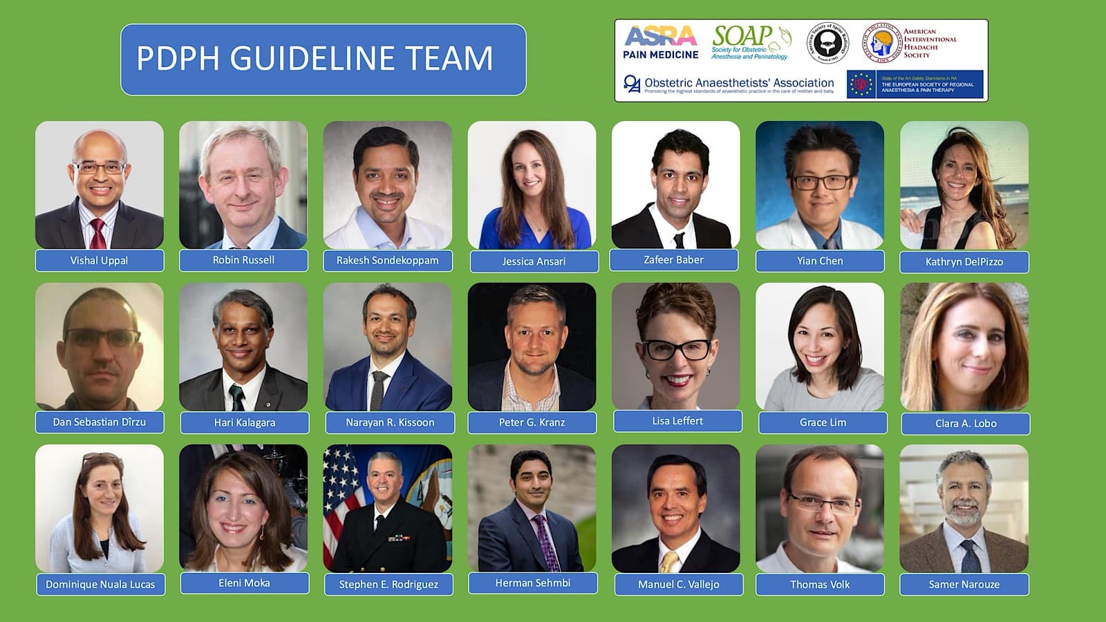 Recently, I had the privilege and honor of leading the development of evidence-based clinical practice guidelines on PDPH, a consensus report from a multi-society international working group.1,2 These guidelines were developed with contributions from 21 delegates (Figure 1) from six professional societies, including the ASRA Pain Medicine, the European Society of Regional Anesthesia (ESRA), the Society for Obstetric Anesthesia and Perinatology (SOAP), the Obstetric Anaesthetists’ Association, the American Society of Spine Radiology and the American Interventional Headache Society.